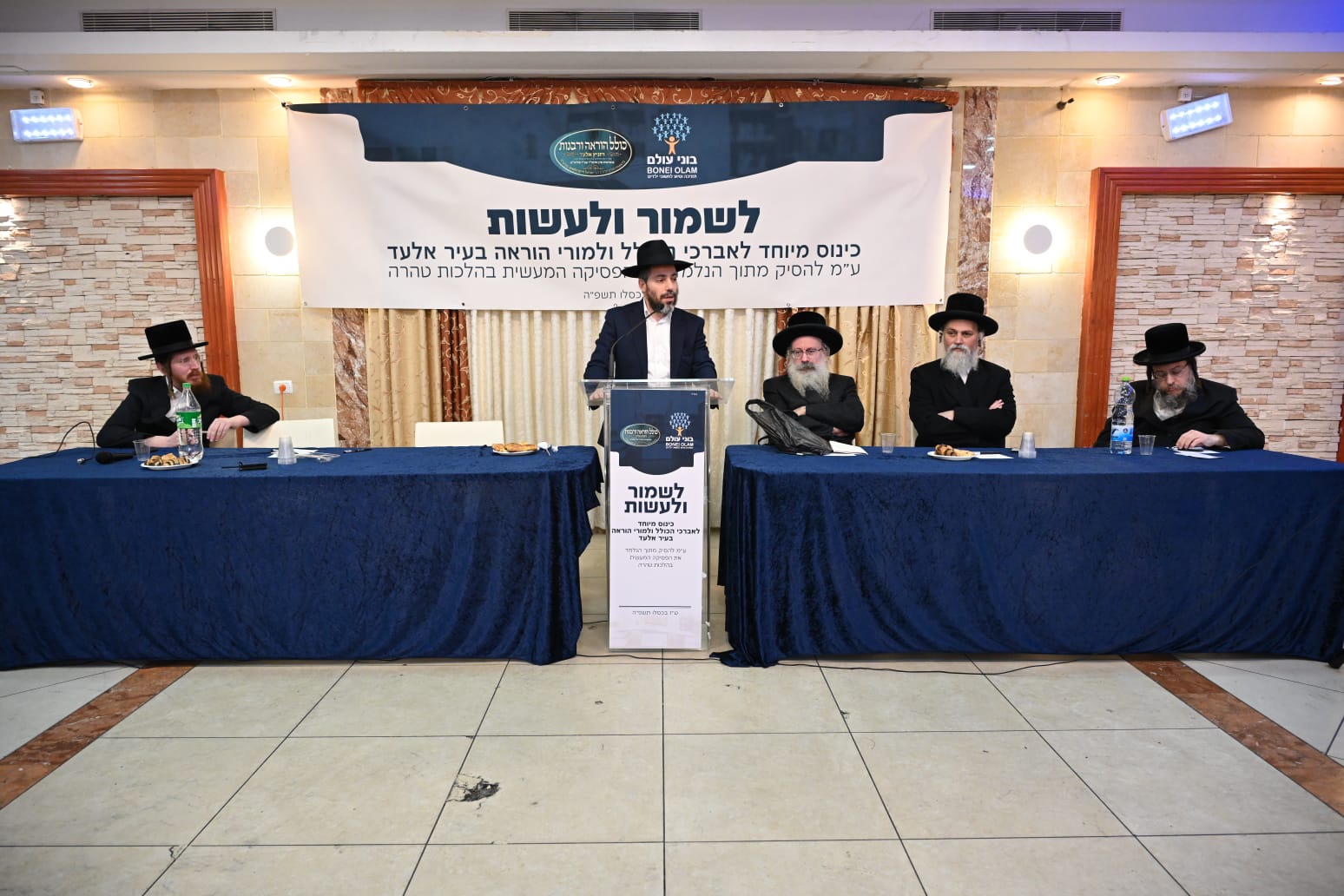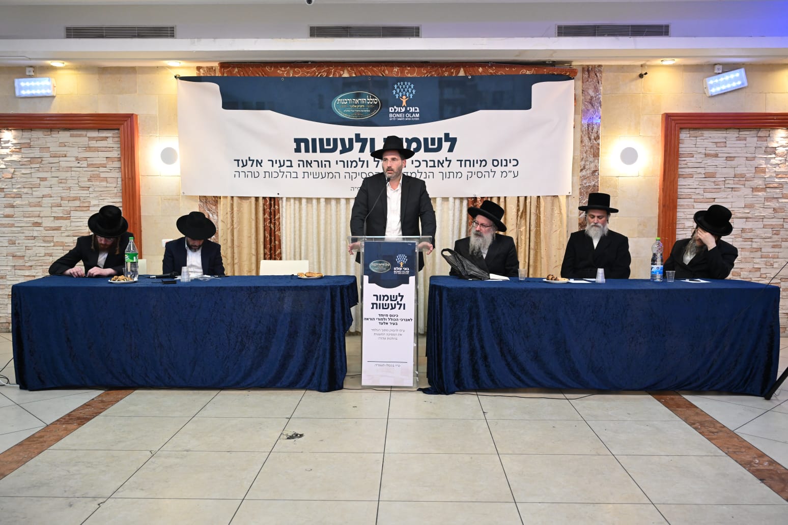 עשרות רבנים ומורי הוראה התכנסו היום באלעד לכינוס ״לשמור ולעשות״, שאורגן על ידי ארגון ״בוני עולם״ במטרה ללבן את ההלכות ולהגיע לפסיקות הלכתיות בנושא. בכינוס נשאו דברים הגאון רבי אברהם דוב שפירא, רב חסידי צאנז בבני ברק, הגאון רבי יוחנן הלפרט, ראש כולל להוראה ויזניץ, מנכ”ל הארגון הרב אליקים לבנון, ויועץ הארגון הרב שמעון ברונר. האירוע עסק בהעמקה בסוגיות הלכתיות מורכבות, תוך מתן דגש על דיון מעשי עבור מורי ההוראה והרבנים המשתתפים.